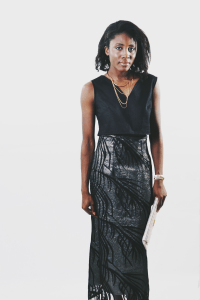 A fitted pencil skirt with a middle slit from the hem at the back.. Polyester lining and a detailed chiffon layer to drape over.